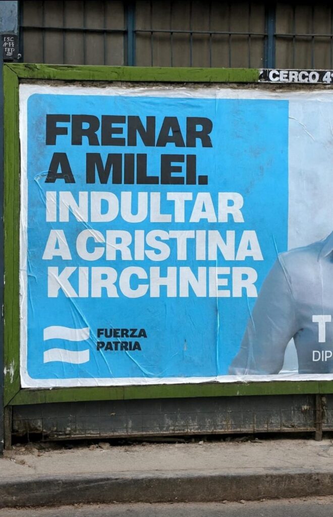El primer afiche, el del “Indulto a Cristina Kirchner”, trasladó la discusión al terreno institucional. Un indulto implica borrar efectos penales de una condena por decisión política, no judicial. En un país atravesado por escándalos de corrupción, la idea funciona como símbolo: ¿volver a la lógica del privilegio para la casta política o sostener el principio de que la ley es pareja?