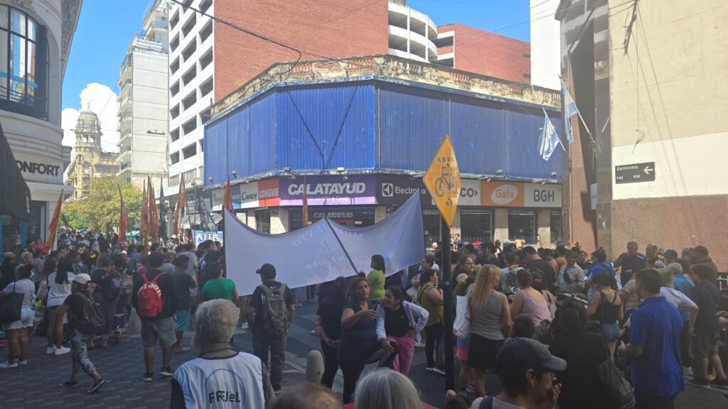 La postal se repite: banderas partidarias, bombos, columnas de organizaciones que viven de la intermediación de planes y un centro comercial que ve cómo se espanta al poco público que todavía se anima a ir al microcentro.