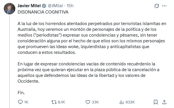 El terrorismo islamista no se combate con eufemismos ni con silencios cómplices. Se lo enfrenta con claridad moral, decisión política y sin pedir perdón por defender la civilización que permitió la convivencia, la libertad y la paz.