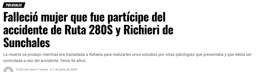 - 18/12/2023 – Entre Sunchales y Colonia Aldao (km 8 aprox.)