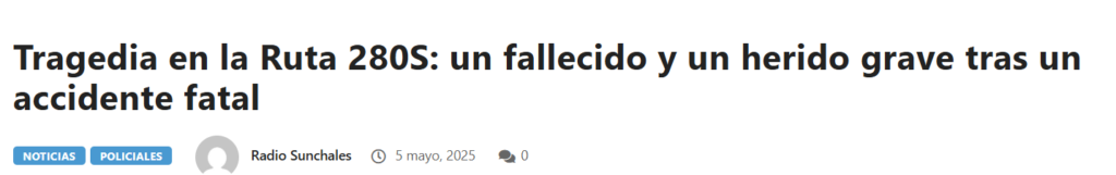 Algunos accidentes en la Ruta Provincial 280-S (últimos 2 años)