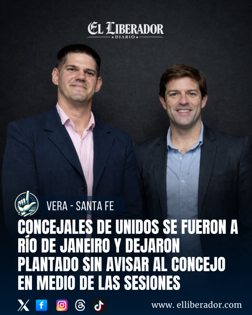 La misma intendente que hoy denuncia falsas demoras es la que viene de protagonizar un escándalo institucional, cuando dos concejales oficialistas se ausentaron sin aviso del Concejo Municipal mientras vacacionaban en Río de Janeiro e intentaron sesionar de manera virtual. https://elliberador.com/index.php/2026/01/14/vera-concejales-de-unidos-se-fueron-a-rio-de-janeiro-y-dejaron-plantado-sin-avisar-al-concejo-en-medio-de-las-sesiones/