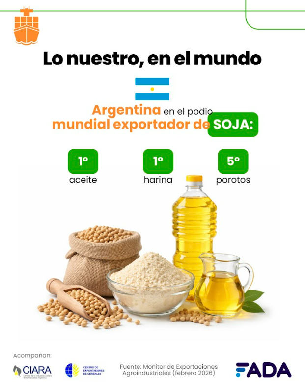 - Parte del podio global en soja, maíz y carne vacuna, que concentran el grueso del comercio exterior del sector.