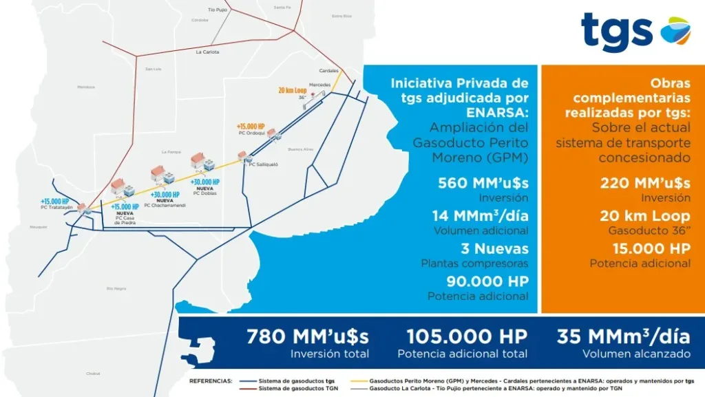 La ampliación del Gasoducto Perito Moreno es la continuidad de un proceso iniciado en 2024, cuando TGS presentó la iniciativa como un proyecto privado. Luego de un proceso de licitación nacional e internacional, en octubre de 2025 el Gobierno adjudicó formalmente la obra a la compañía.